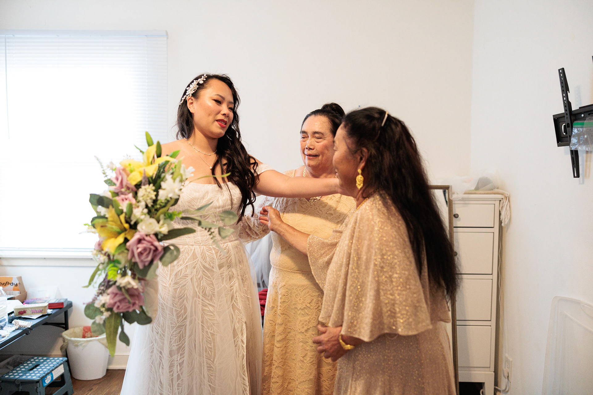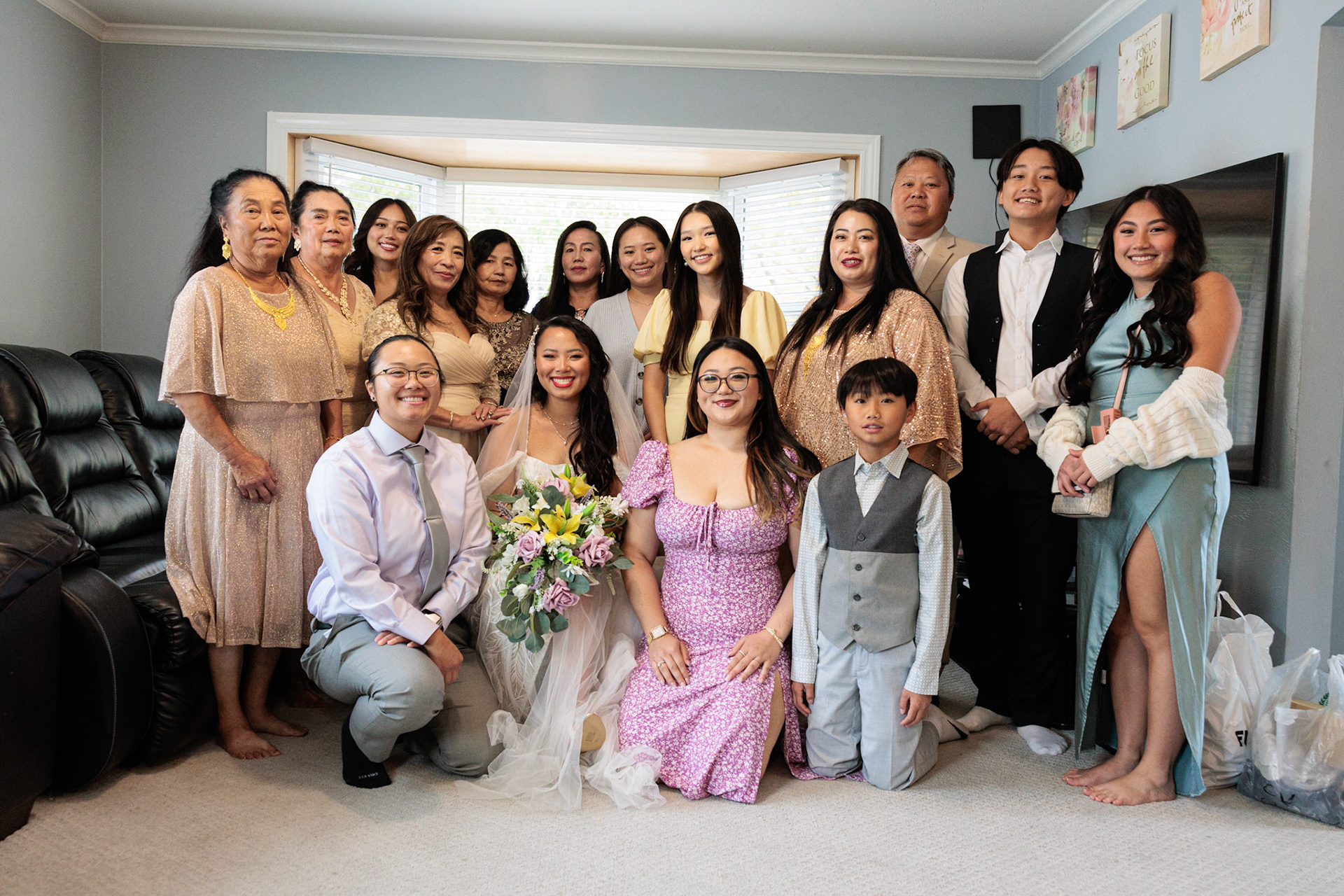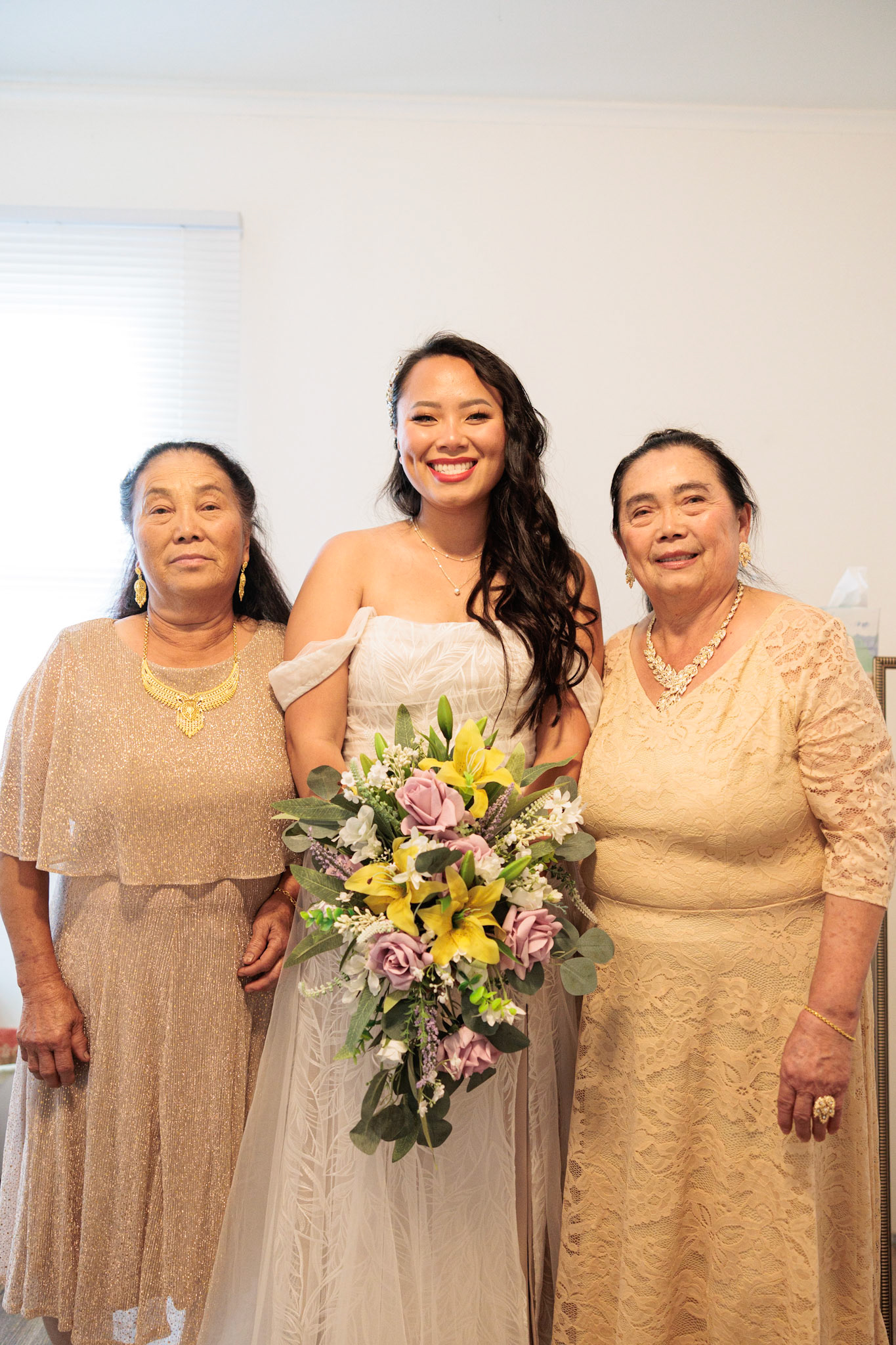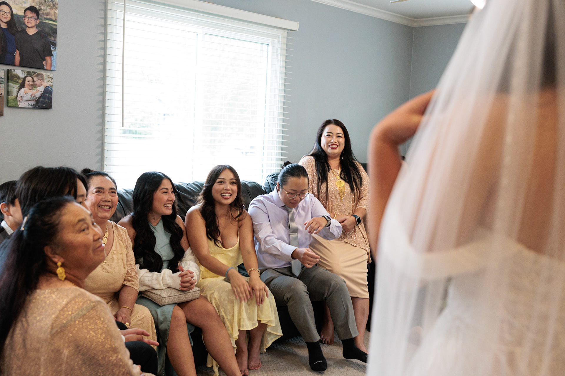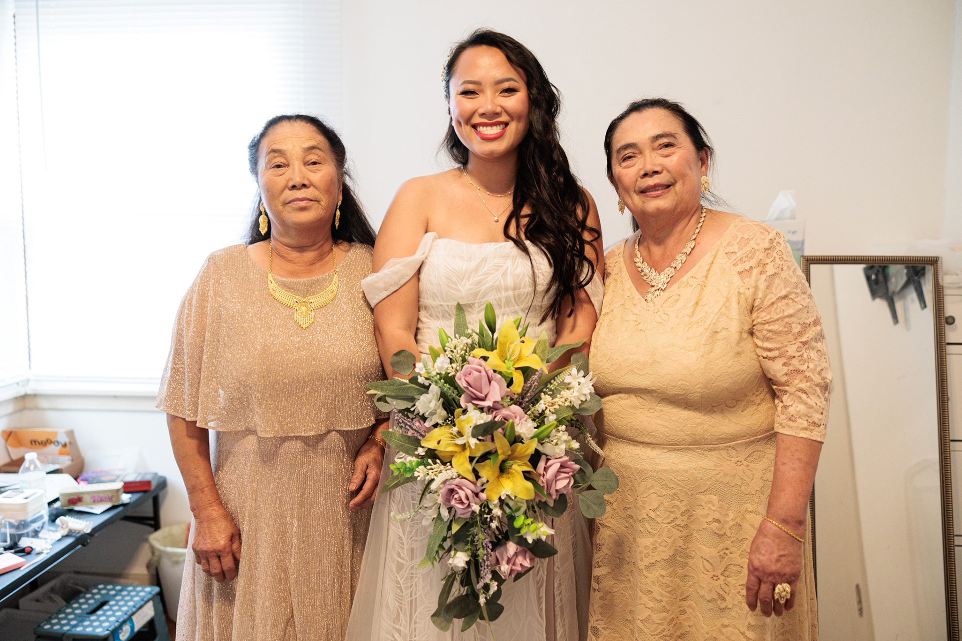 Bride, bridal party, parents, and grandparents getting ready for the wedding. First looks included!