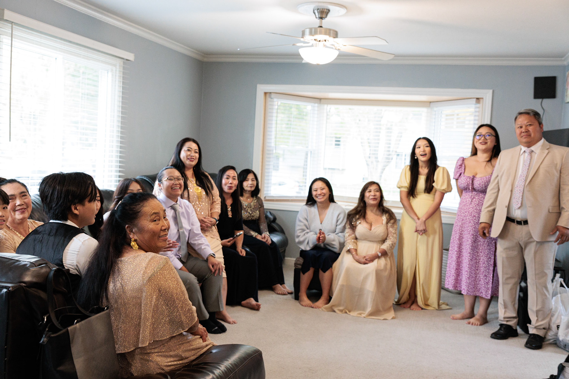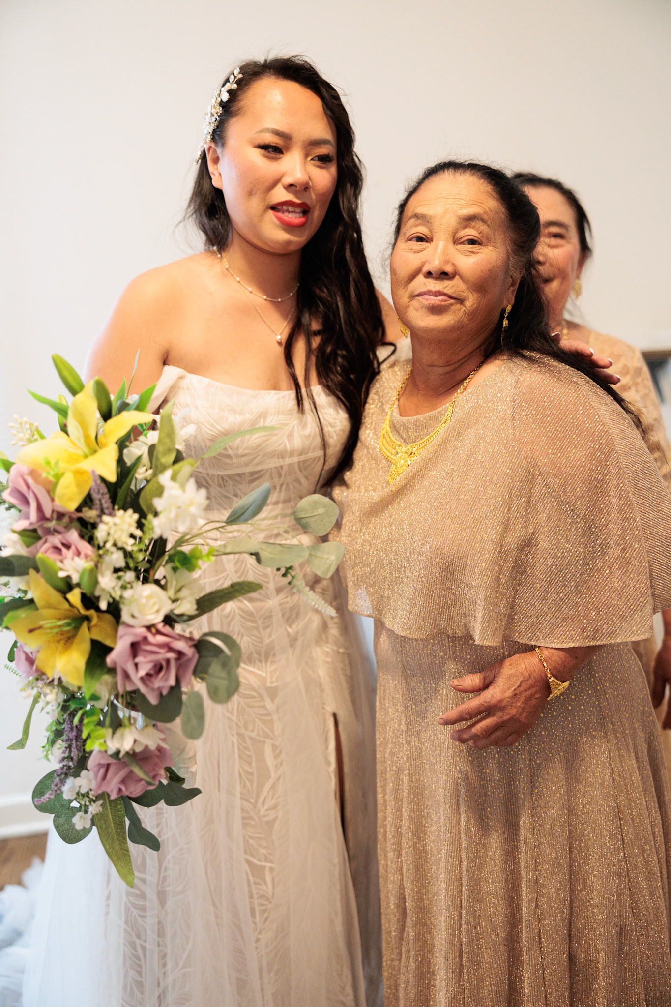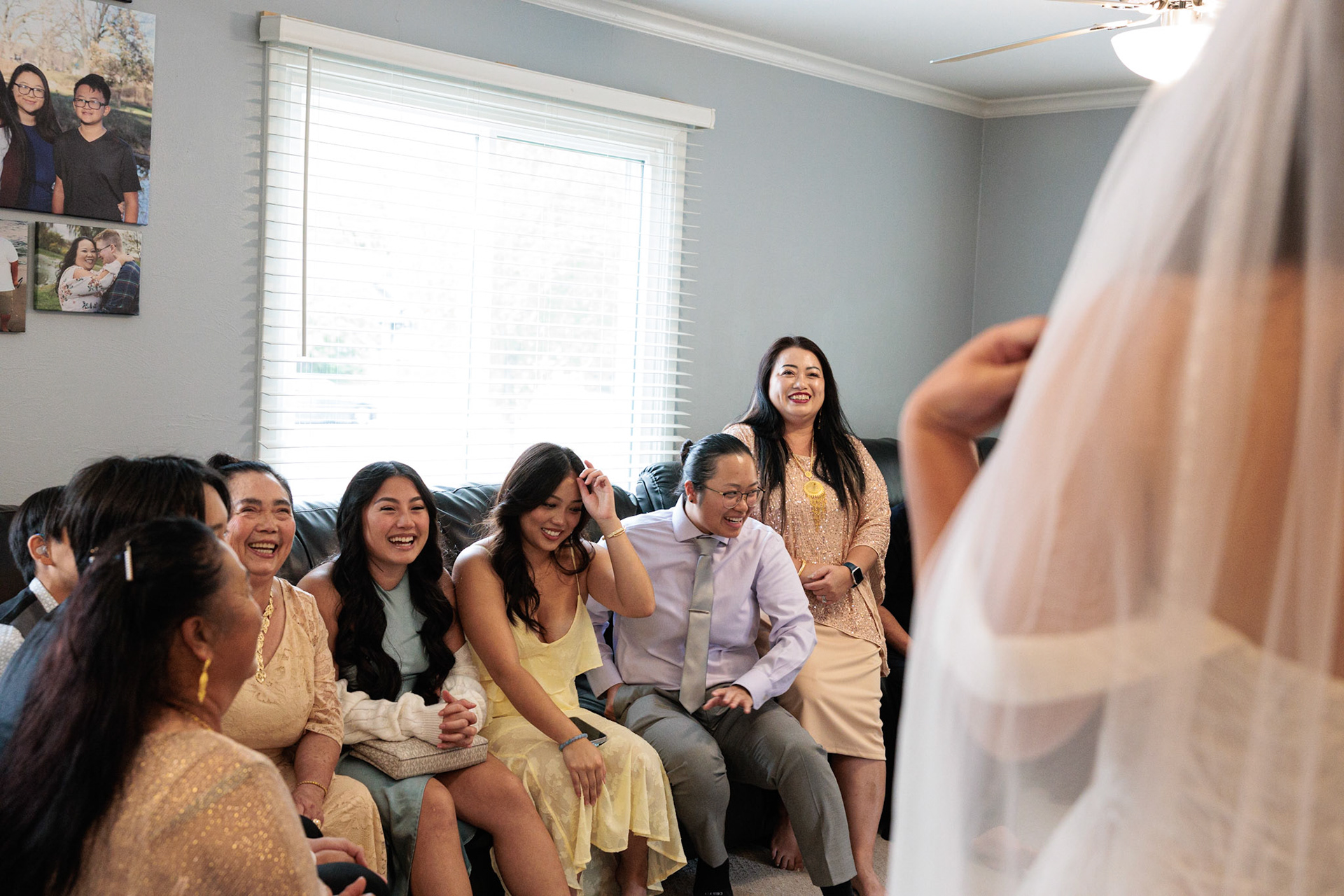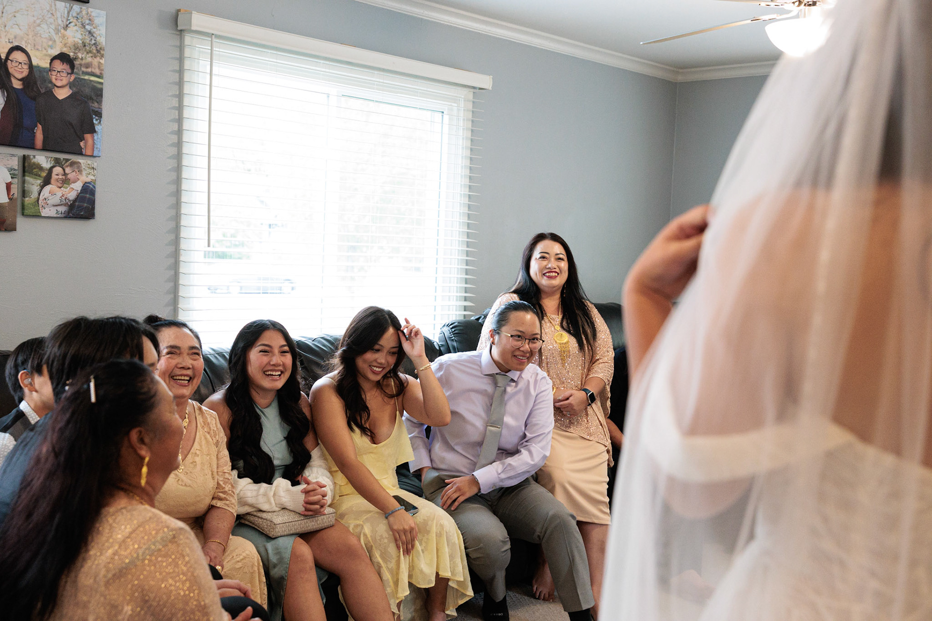 Bride, bridal party, parents, and grandparents getting ready for the wedding. First looks included!