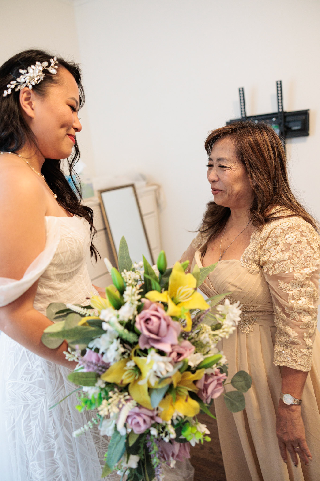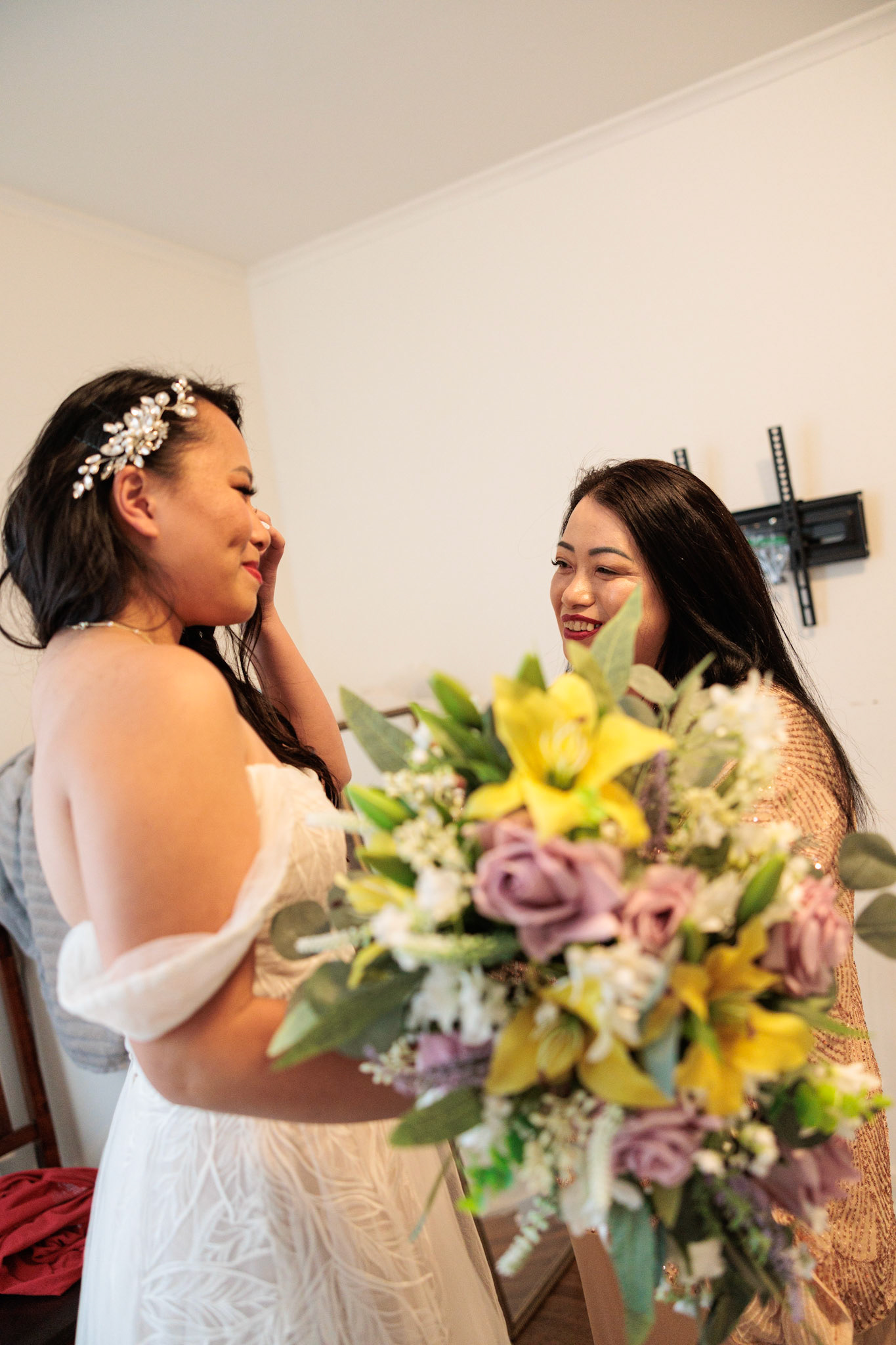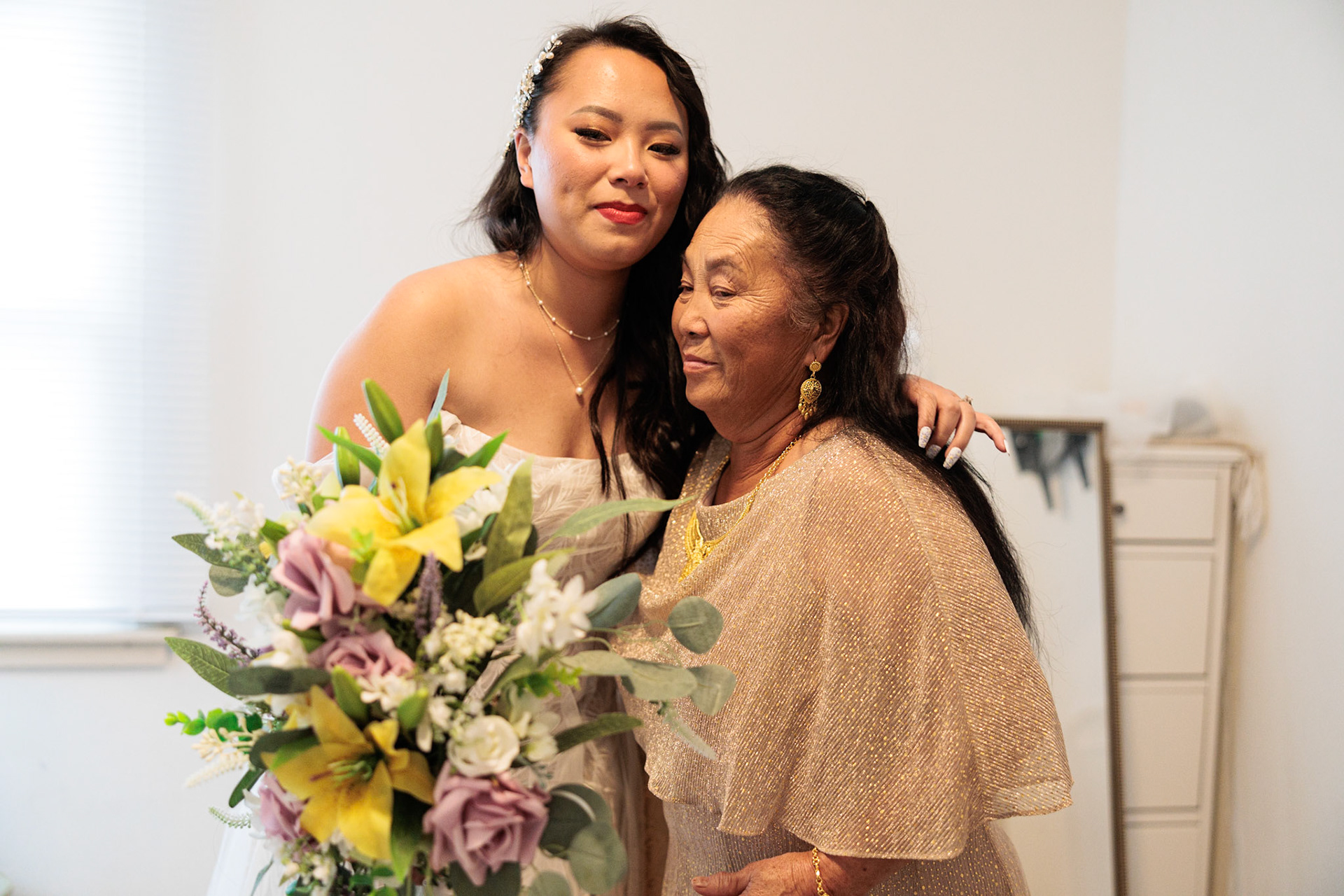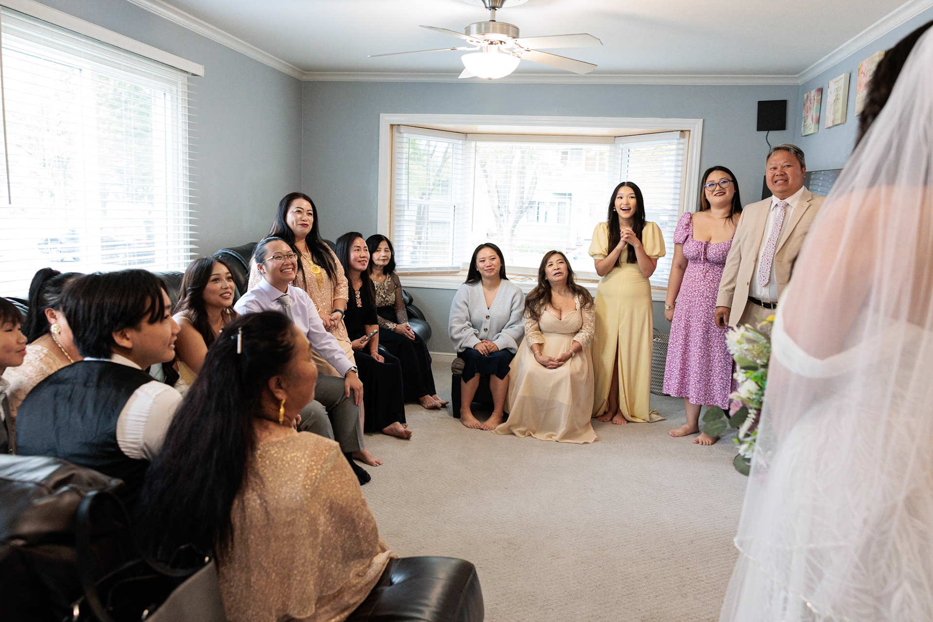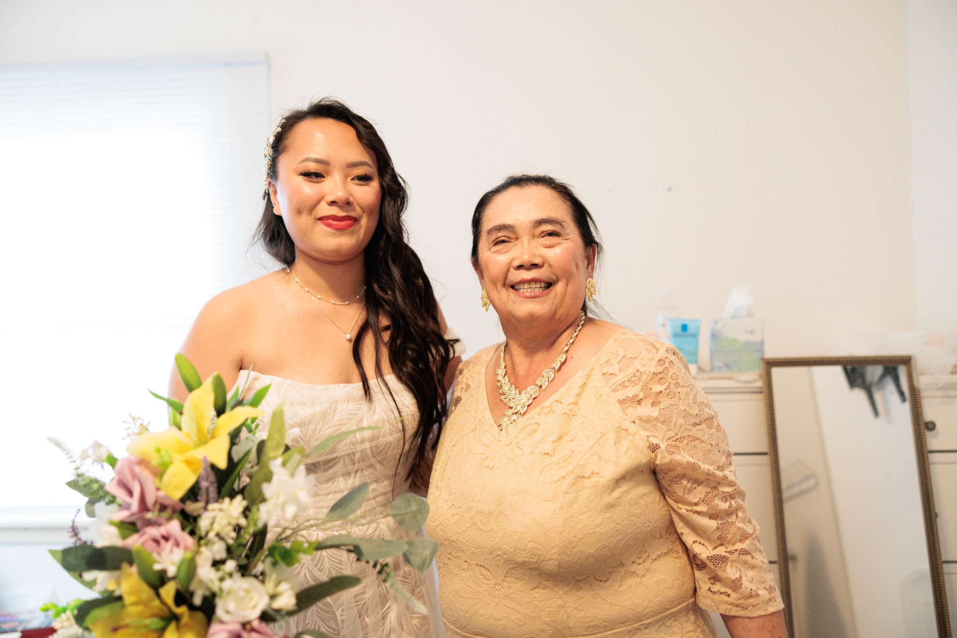 Bride, bridal party, parents, and grandparents getting ready for the wedding. First looks included!