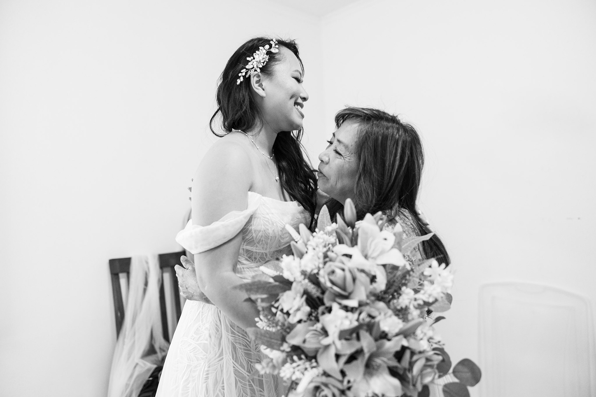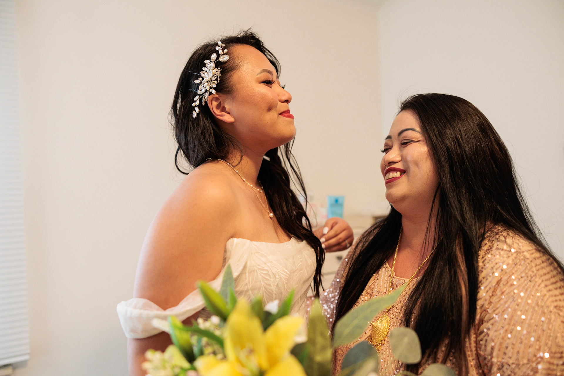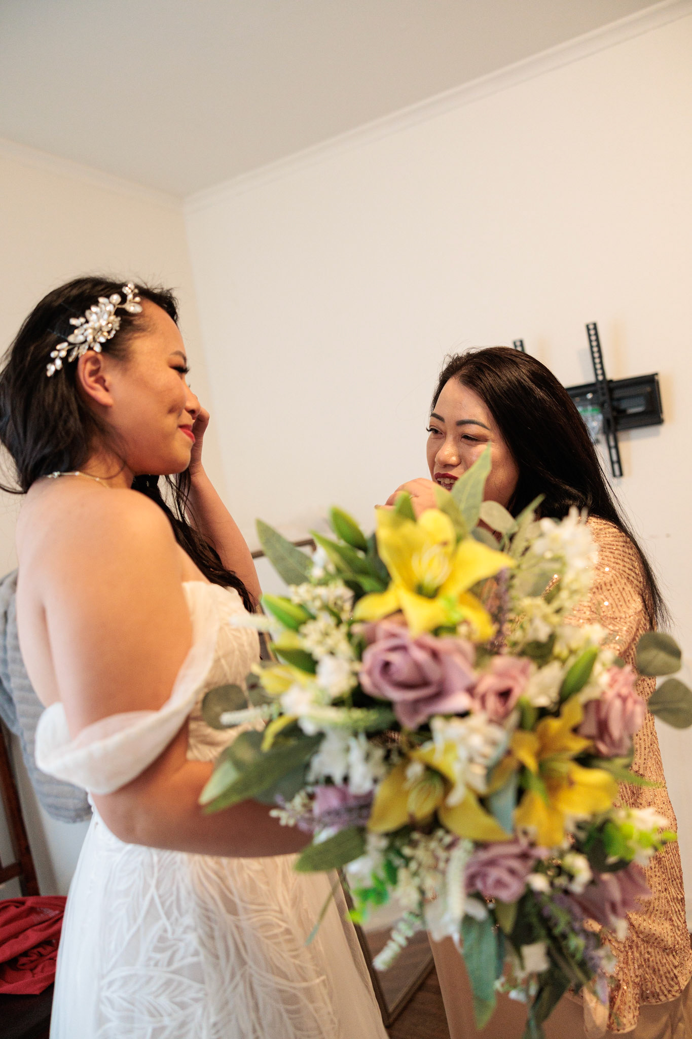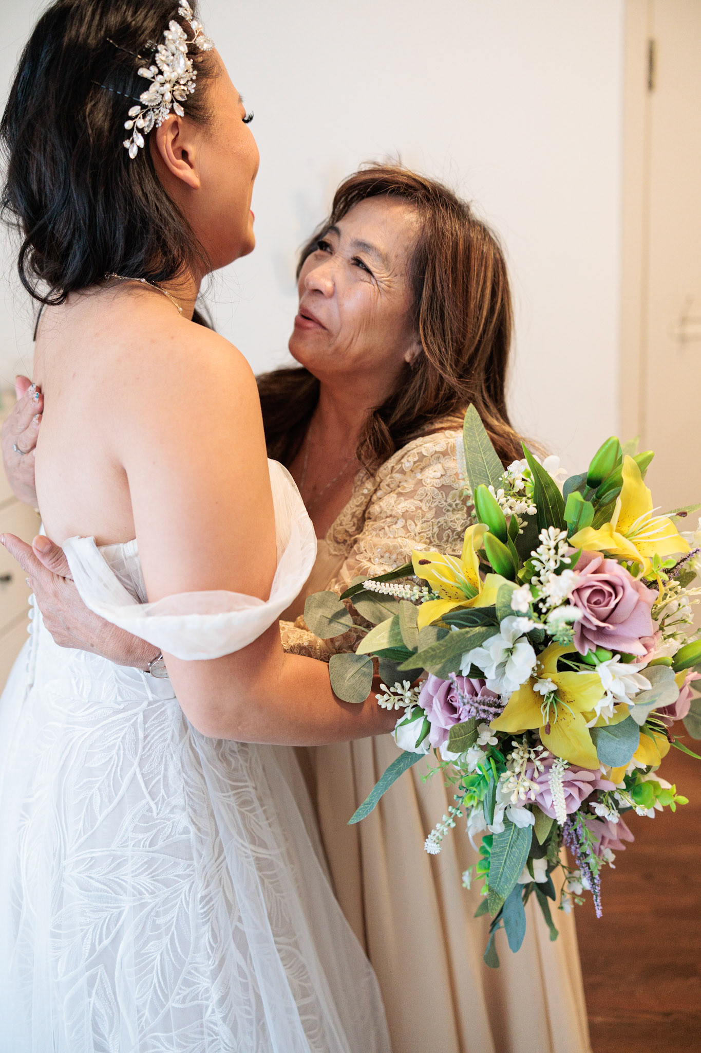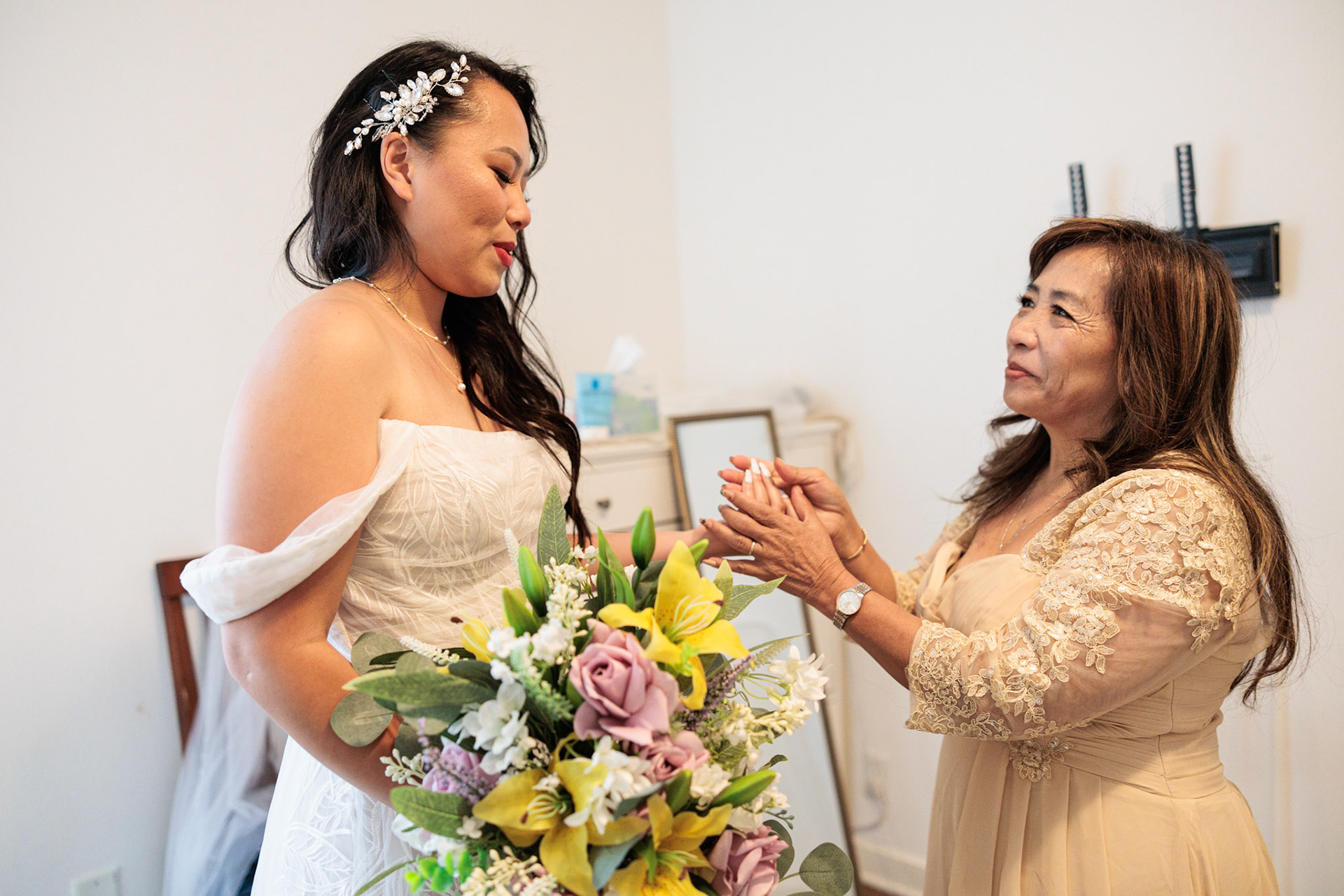 Bride, bridal party, parents, and grandparents getting ready for the wedding. First looks included!