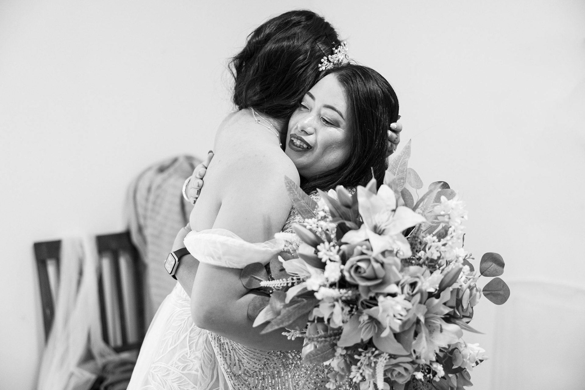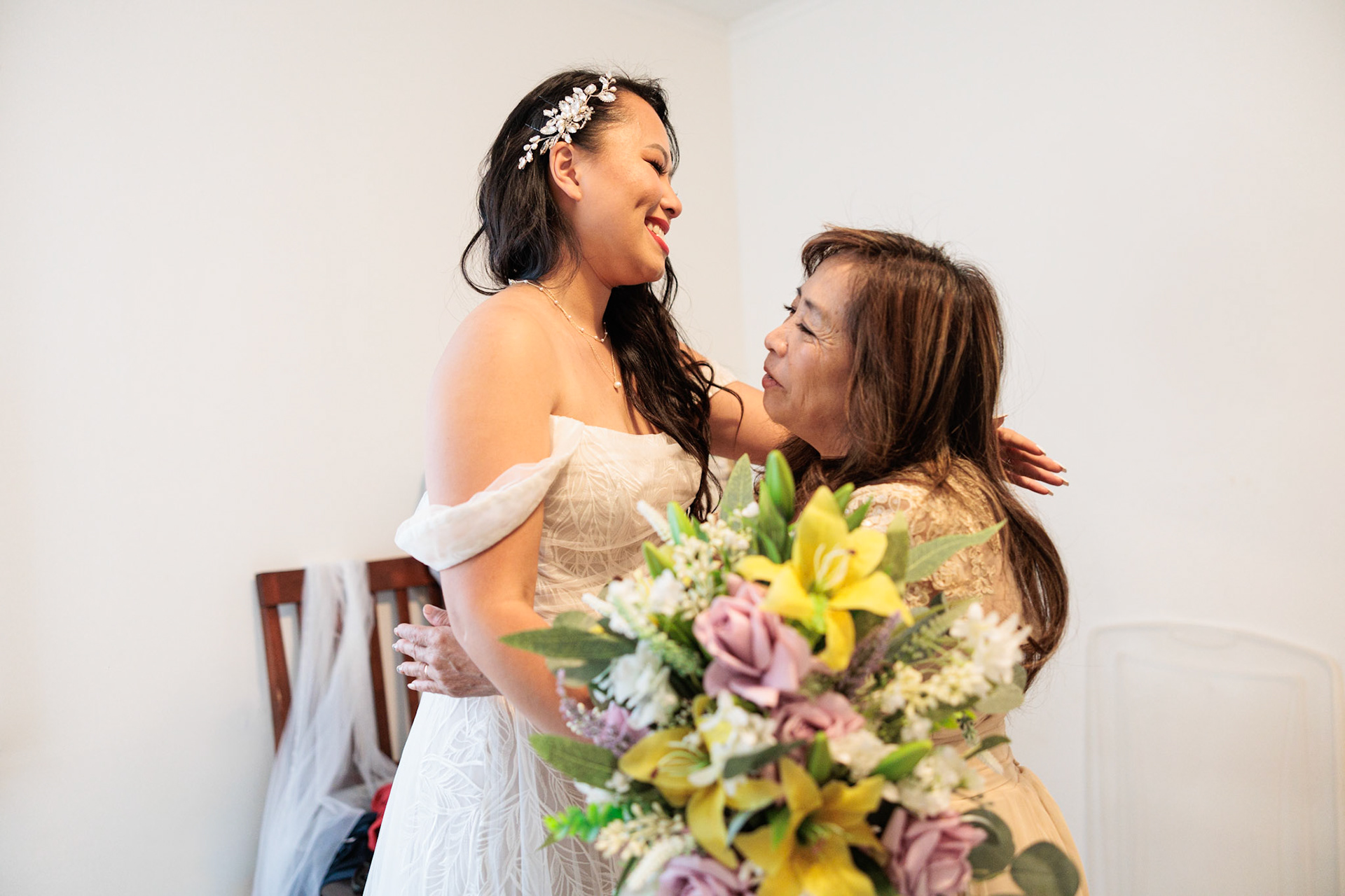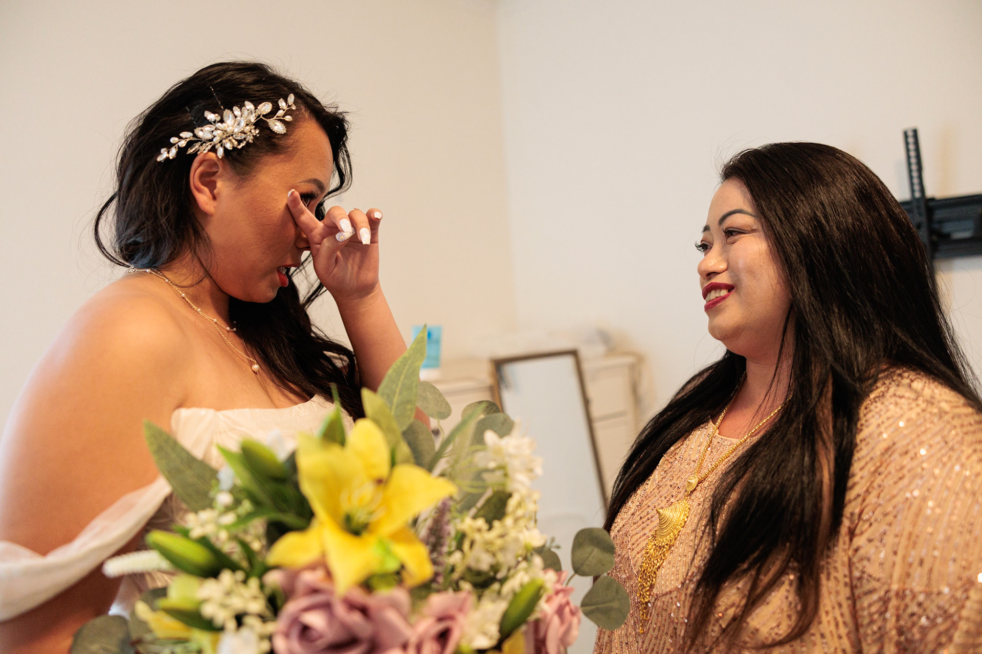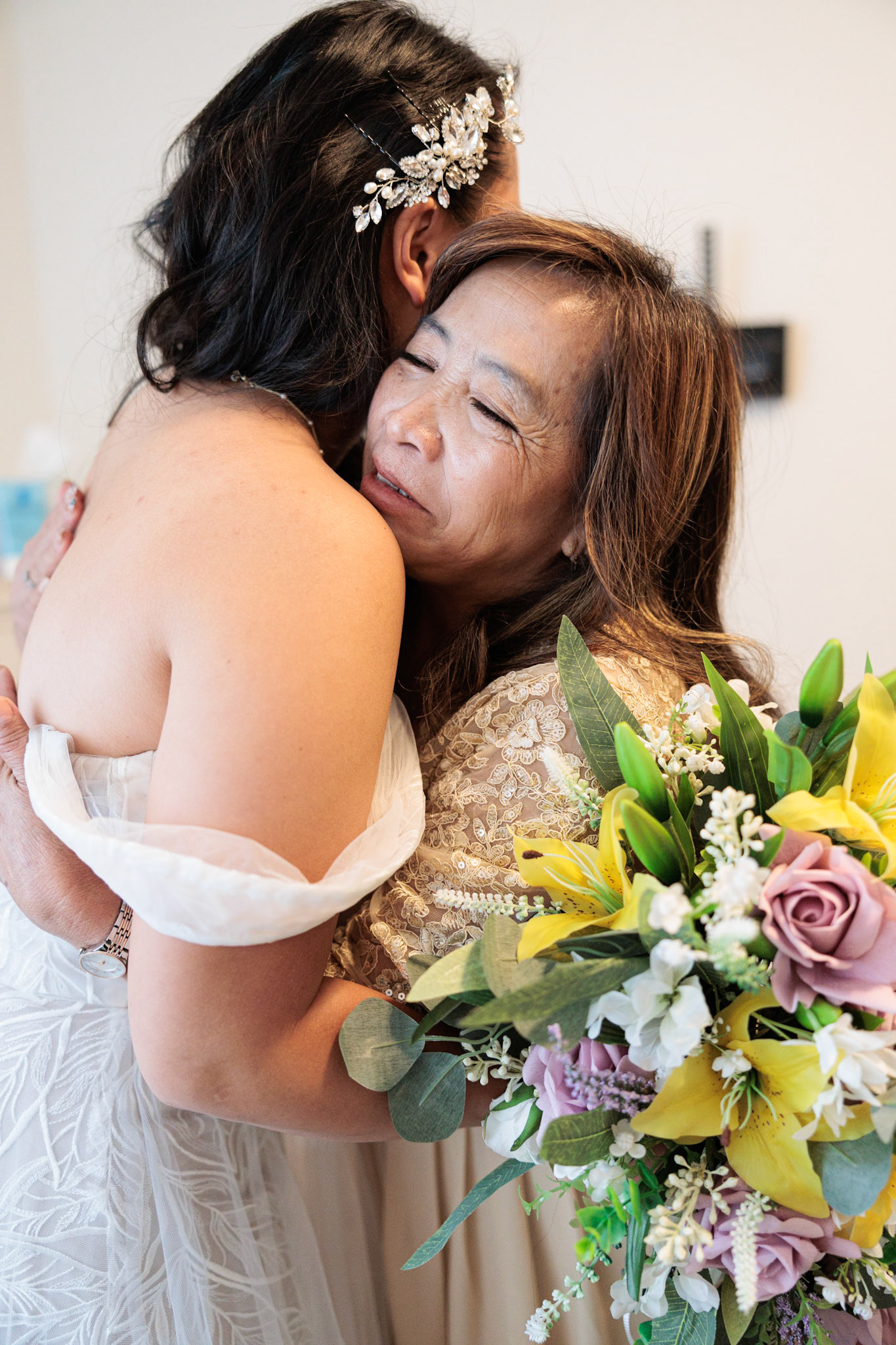 Bride, bridal party, parents, and grandparents getting ready for the wedding. First looks included!