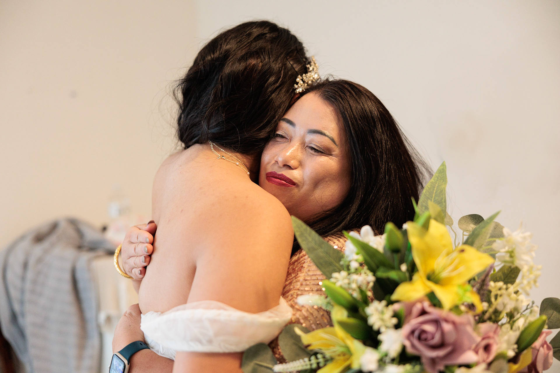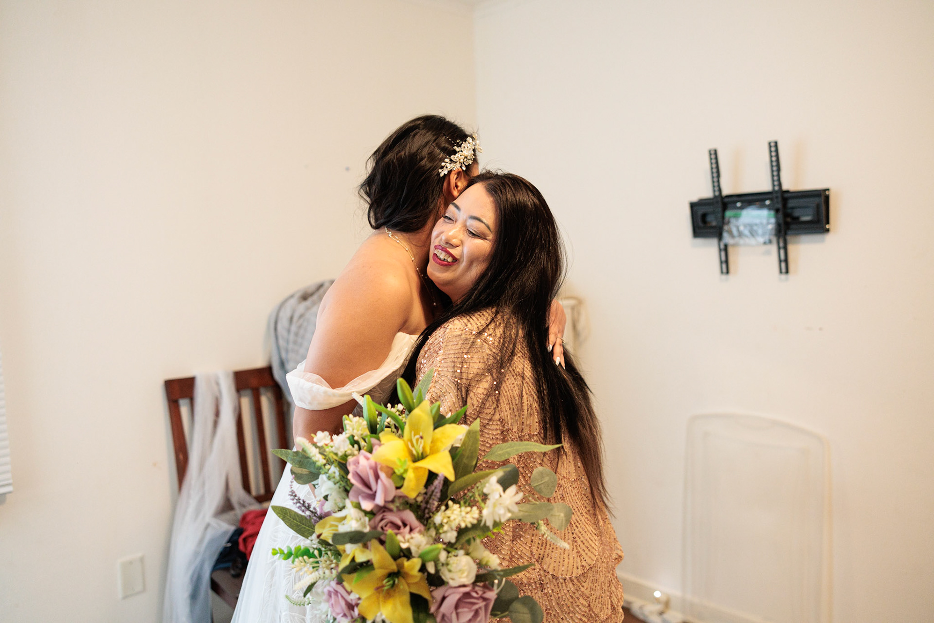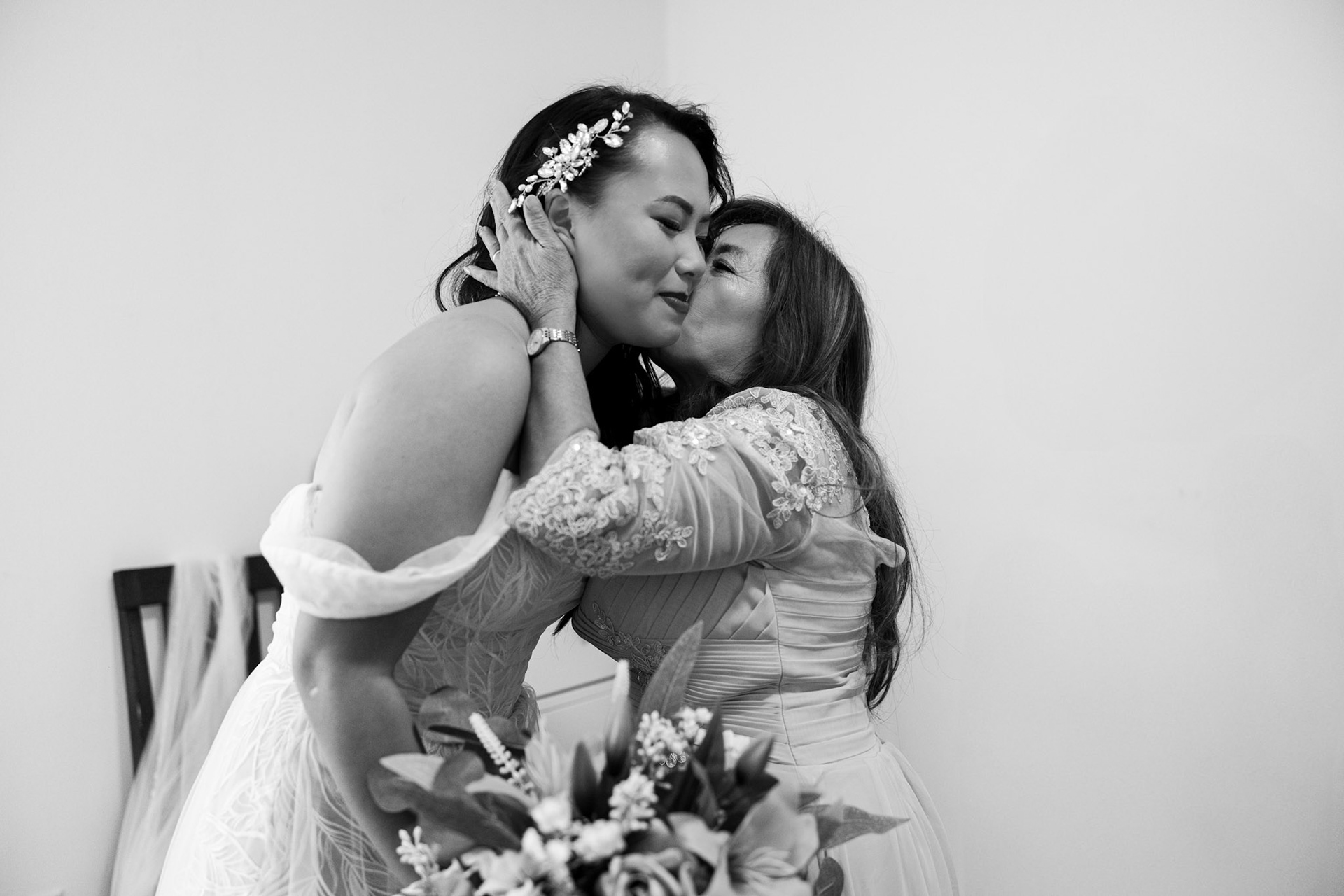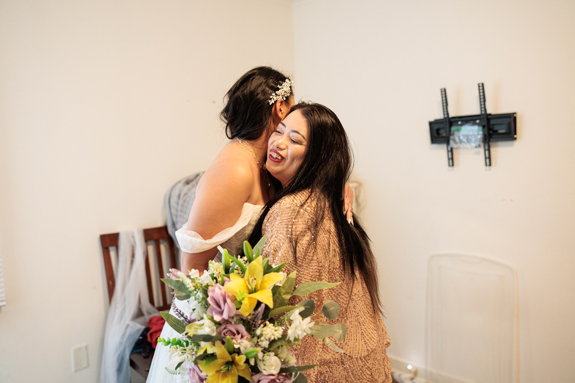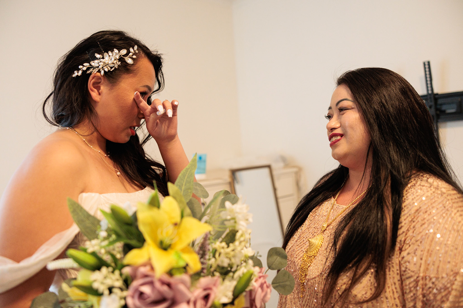 Bride, bridal party, parents, and grandparents getting ready for the wedding. First looks included!